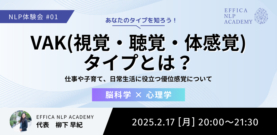 Effica NLPアカデミーでは、NLPとはなんだろう?と興味を持っていただいた方に、わかりやすく解説をする体験講座を複数用意しています。